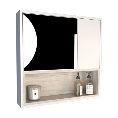 Pensado para optimizar el espacio en tu baño, ofrece una solución funcional para organizar medicamentos, cosméticos y artículos de uso diario, manteniéndolos siempre al alcance de la mano. Su estructura resistente y de líneas modernas se adapta fácilmente a distintos estilos de baño, aportando un toque elegante sin perder simplicidad. Gracias a su sistema de guardado inteligente, cada objeto encuentra su lugar, ayudándote a mantener el orden y la limpieza en todo momento. BOTIQUÍN CON ESPEJO Puerta con espejo Espacio guardado cerrado con estante Espacio abierto Se entrega en caja con todo lo necesario para el armado Medidas: Altura 61cm – Ancho 61cm – Profundidad 13cm