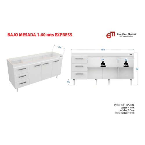 BAJO MESADA EXPRESS 1,60 mts. SIN BACHA