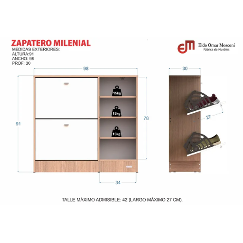 * CARGA MAX. ADMISIBLE TOTAL: 14 pares de calzado